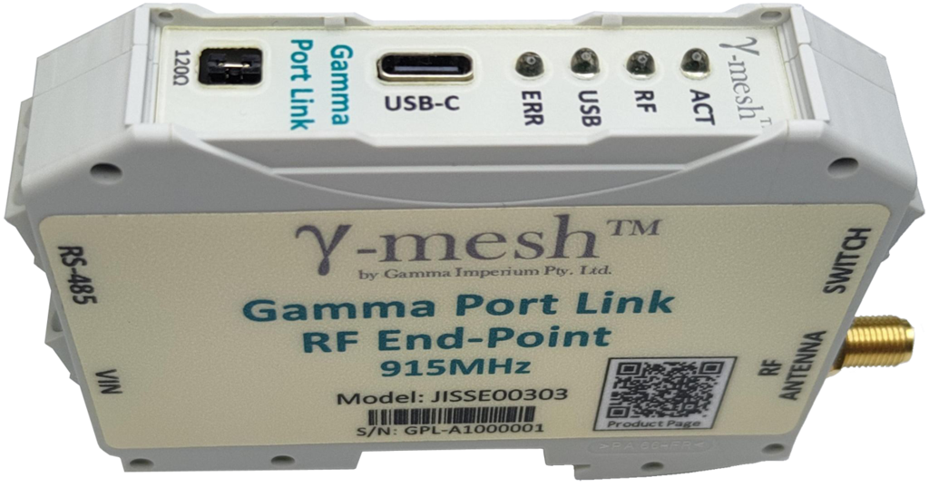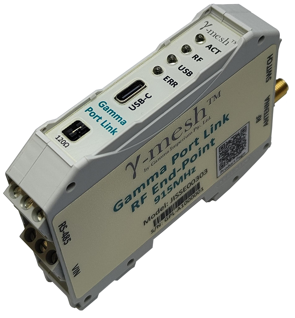 Designed as a radio network access point, either working as a Network Master attached to a controller or as an End Point affixed to a Site Asset, the Gamma Port Link allows remote connectivity of Assets such as Meters and Inverters over long distances without the need for cables. With a key goal of making this device as simple as possible to install and support, the Gamma Port Link requires no device-level configuration, with network connectivity and routing as well as all port-parameters being configured either autonomously or remotely.